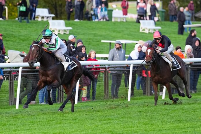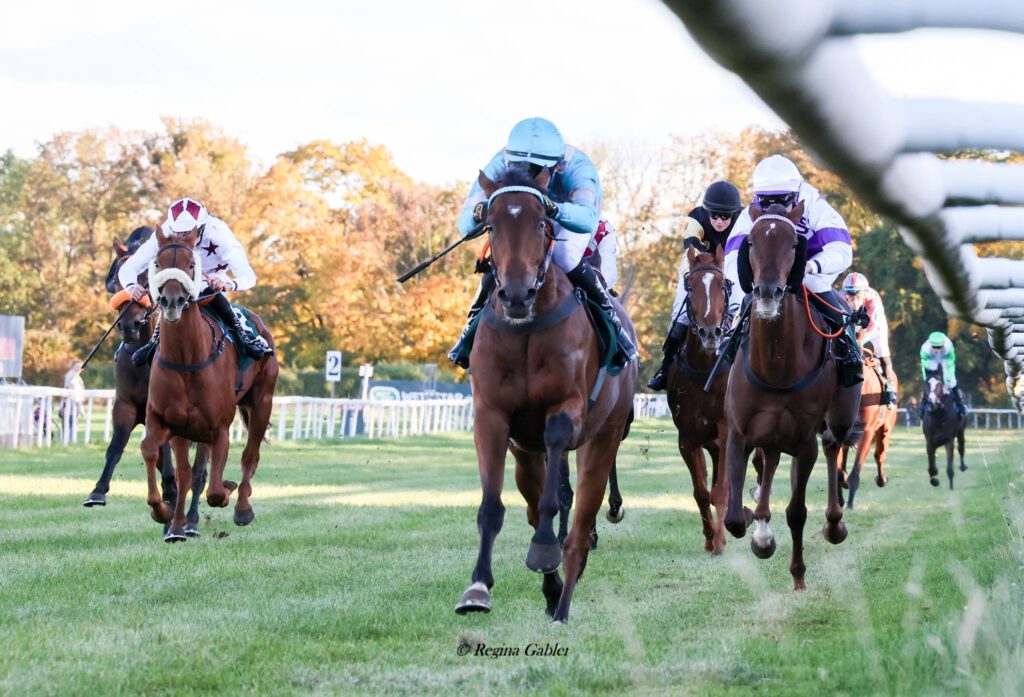 Unser Bene, weltbester Beni, der das absolute Herbstpferd ist und dem weicher Boden und längere Distanz überhaupt nichts ausmachte, konnte unter Am. Matthew S. Johnson leicht gewinnen.
