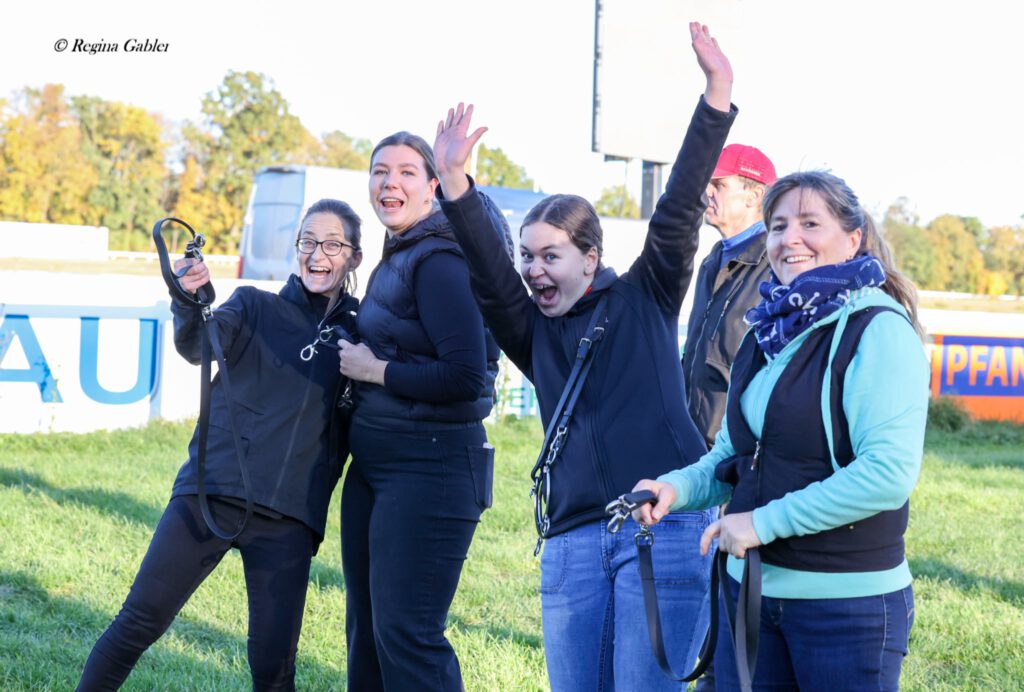 Strahlende Gesichter bei der Siegerehrung Lilli-Marie Engels, Irmingard Hessler und die Besitzer von Sky Emperor.